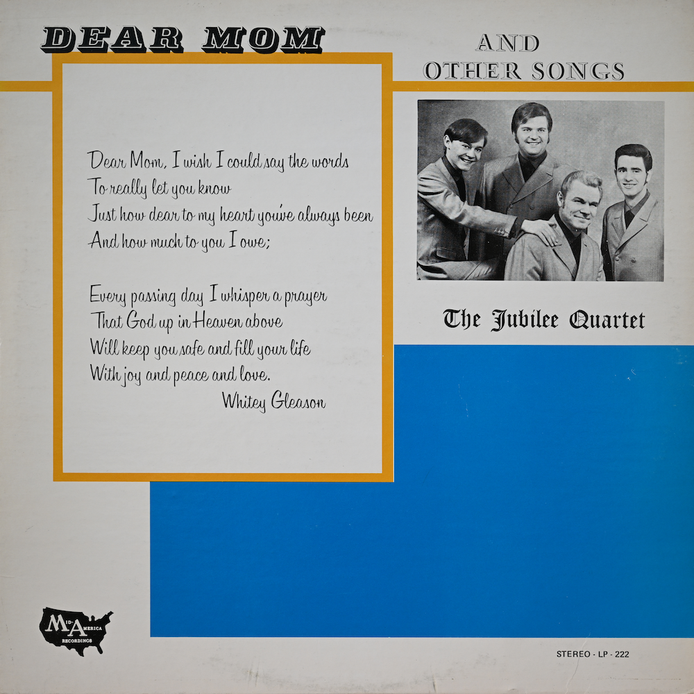 hi-res1970 Dear Mom And Other Songs (Mid-America Recordings/LP-222): Dear Mom?; Eternity; Jesus Is Passing This Way?; Oh, What Precious Peace?; Life Is Worth Living; When The Gates Swing Open Wide; Some Day; Jesus Is Coming Soon; It Pays To Serve Jesus; Wasted Years; Don't Turn Him Away; Cleanse Me.