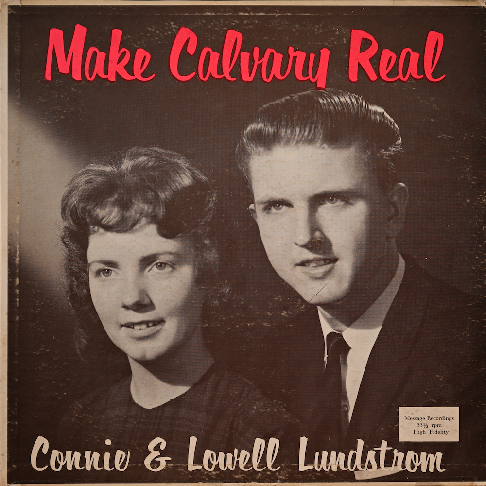 hi res1962 Make Calvary Real (Message Records/LP 1000): Make Calvary Real; That's Why You're Not Happy Like Me; Have You Ever Come To Jesus; My Priest; The Gospel; Someone To Take My Place; His Name Is Jesus; When The Lord Is By My Side; Dying Without Jesus; Tommy's Prayer; A Visit By The Devil; You Have A Friend (Lawrence Lundstrom, Connie Lundstrom, Lowell Lundstrom).